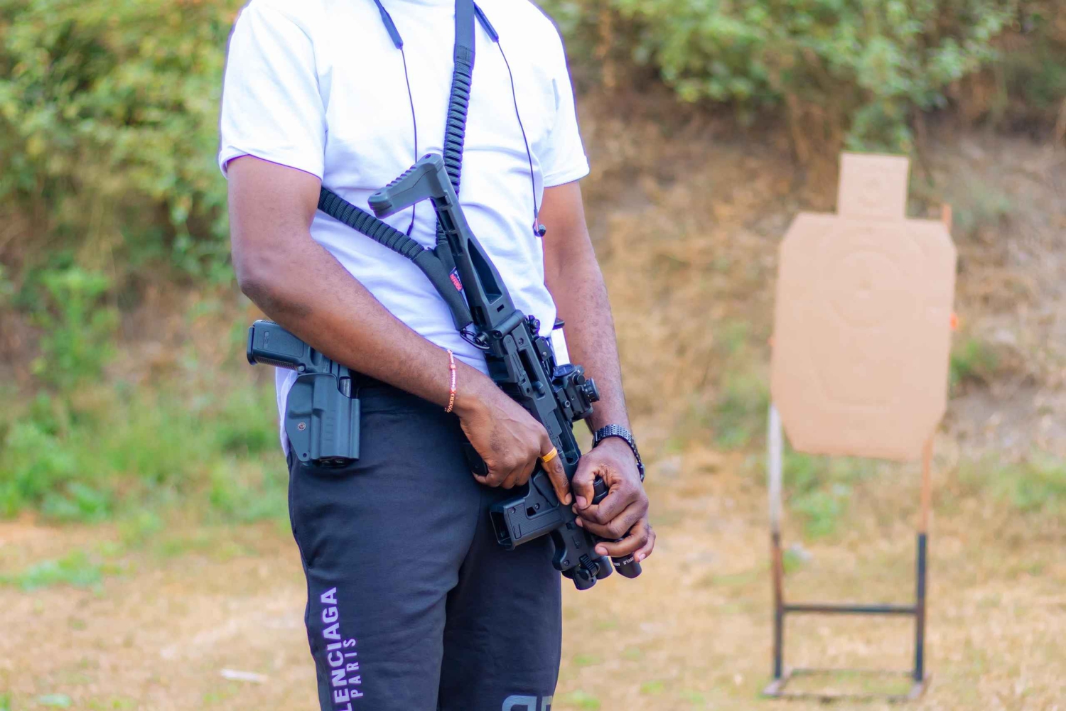 Experience the thrill of firing a pistol in the serene and picturesque environment of Nairobi. Enjoy a unique combination of excitement and tranquility as you take part in an exhilarating outdoor shooting range experience. Immerse yourself in an action-packed day at one of Nairobi's premier shooting ranges. This all-inclusive package covers everything you need for an unforgettable adventure. Whether you're a seasoned shooter or a first-timer, this experience offers the perfect blend of adrenaline and safety in a stunning outdoor setting. Enjoy the thrill of firing a pistol while surrounded by Nairobi's serene and picturesque environment, a unique combination of excitement and tranquility. With expert instructors, top-notch facilities, and breathtaking views, this shooting range experience guarantees a day filled with adventure.Includes