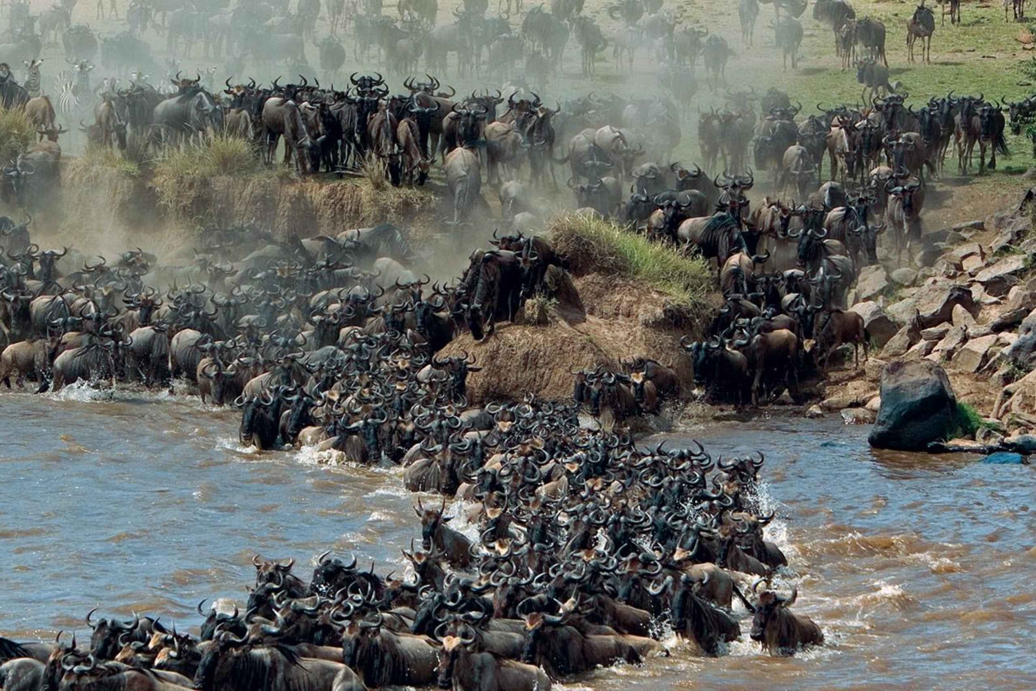 Odbiór z Twojego hotelu lub rezydencji w Nairobi o 5:00 rano i przejazd prywatnym autem do rezerwatu zwierząt w Maasai Mara. O 8 rano zjesz śniadanie w drodze lub możesz zabrać ze sobą śniadanie w formie pikniku. 09:00: Przybycie do rezerwatu zwierząt w Maasai Mara. Wycieczki safari zaczynają się przy bramie Sekenani i prowadzą aż do rzeki Maasai Mara. Rezerwat Masajów Mara to najpopularniejsze miejsce turystyczne w Kenii. Znajduje się w Wielkiej Dolinie Szczelinowej, głównie na otwartych trawiastych terenach. Dzika przyroda jest najbardziej skoncentrowana na zachodnim skarpie rezerwatu. Jest uważany za klejnot wśród kenijskich obszarów obserwacji dzikiej przyrody. W samej tylko corocznej migracji gnu bierze udział ponad 1,5 miliona zwierząt, które przybywają w lipcu i odchodzą w listopadzie. Trudno przegapić wielką piątkę. Fenomenalna migracja gnu, która jest spektakularnym wydarzeniem widzianym tylko w Maasai Mara, to cud świata. 13:00: Zjesz spakowany lunch piknikowy w cieniu drzew z widokiem na rozległy krajobraz parku, alternatywnie na życzenie chętnie zarezerwujemy dla Ciebie lunch w formie bufetu w Keekorok Lodge za dodatkowe 25 USD. 16:00: Wyjedź z parku i ruszaj z powrotem do Nairobi. Godz. 20:00: Powrót do Nairobi i transport powrotny do hotelu.Includes