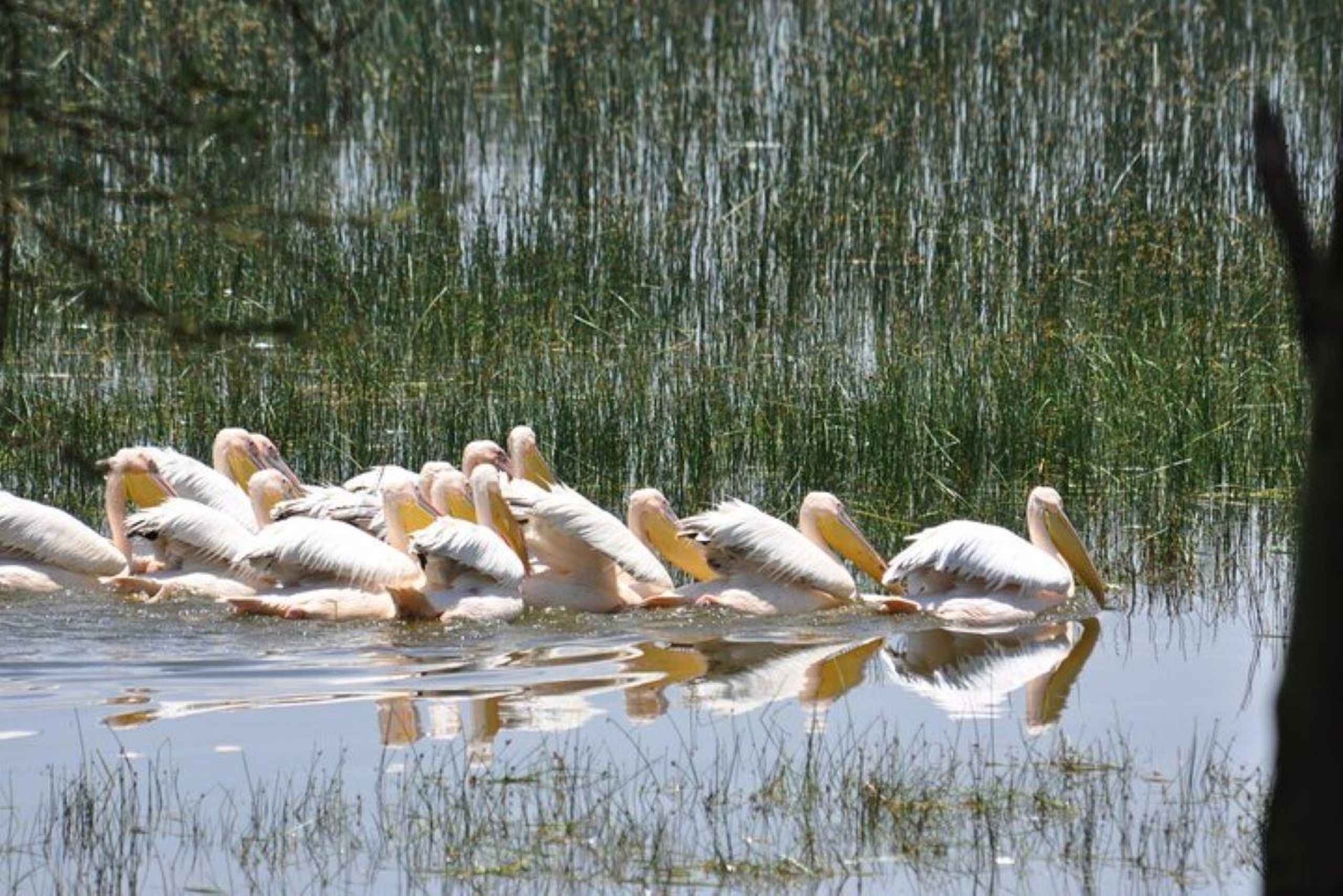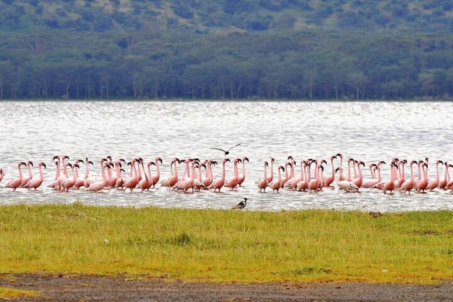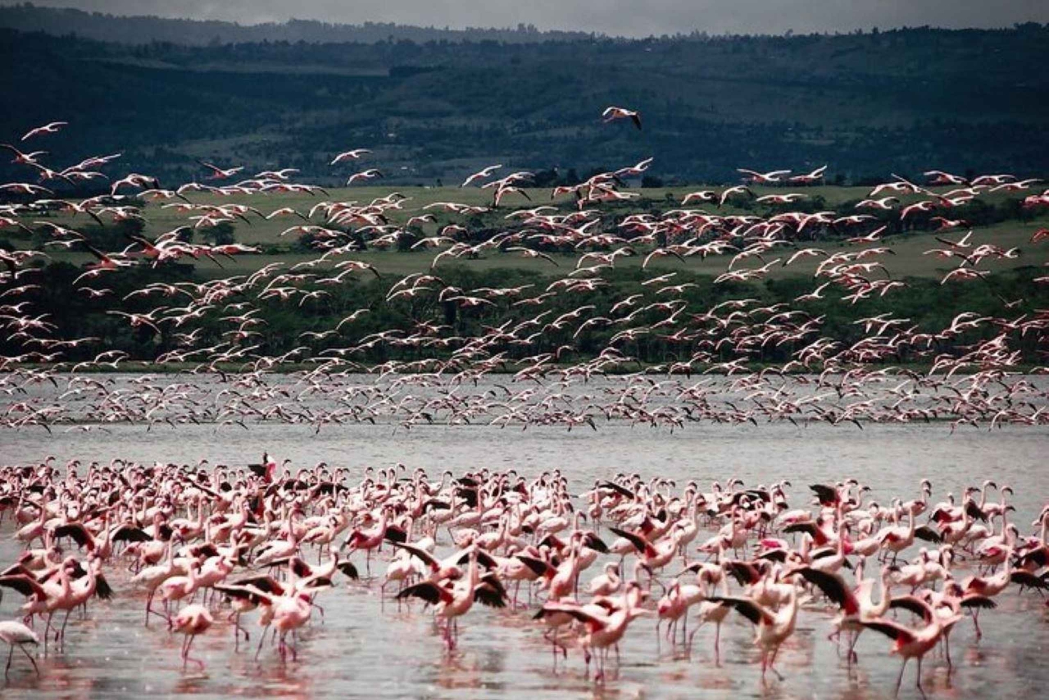 Se flodhästar, mata örnar och båtresa på Lake Naivasha på en dagsutflykt från Nairobi. Utforska Lake Nakuru och Lake Naivasha med en privat chaufför / guide. Se lysande flockar av rosa flamingor vid Lake Nakuru. Börja ditt äventyr kl. 06.00 med upphämtning i Nairobi. Kör direkt till Lake Nakuru National Park. Sjön är känd som ett fågelreservat med över 400 fågelarter ibland. Det kan finnas upp till två miljoner större och mindre flamingor och tiotusentals andra fåglar vid Lake Nakuru. Därför kallas parken för 'Fåglarnas paradis'. Nationalparken är också ett reservat för noshörningar med utmärkta möjligheter till djurskådning. Njut av djurskådning så snart ni kommer in genom parkens grindar och när det är dags för lunch stannar ni till vid lodgen där ni kan köpa en måltid på en lokal restaurang (egen kostnad). Efter lunchen fortsätter ni att njuta av djurskådning på vägen ut ur parken. Ni lämnar parken ca kl. 15.00 och beger er till Lake Naivasha för en valfri båtresa på 1 timme. Om du vill inkludera båtresan, se till att välja rätt alternativ när du gör din bokning. På båtresan kan du njuta av fågelskådning, örnmatning och flodhästskådning. I slutet av båtresan åker du tillbaka till Nairobi för ankomst kl. 18.00.Includes